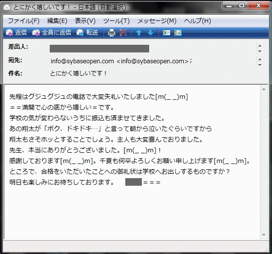 そして、来年の春に無事に入学した際、一言でもメッセージをいただけたら